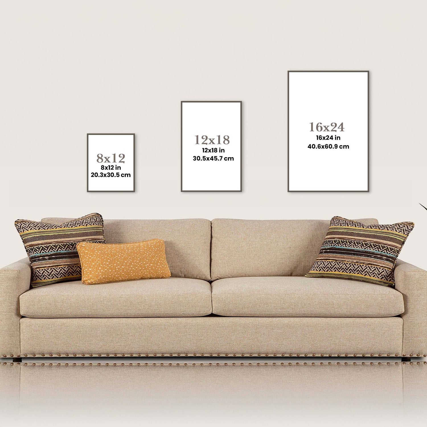 Our Posters and Canvases are available in 3 sizes: 8x12, 12x18 and 16x24.