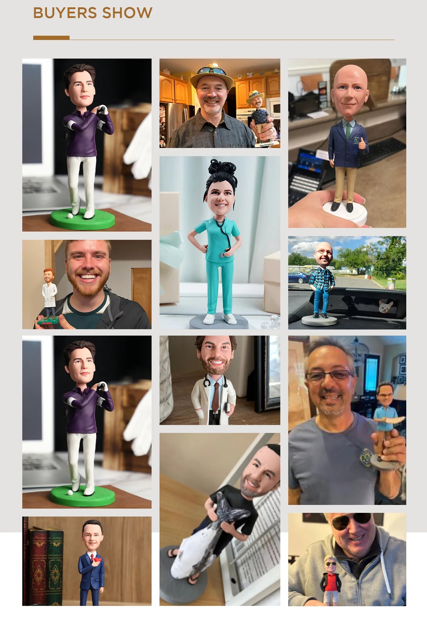 Premium Material,We use a type of nontoxic, polychrome and transformable material - polymer clay, which can make your bobblehead very alive-looking and that's the point we can change and adjust the bobblehead heaps of times